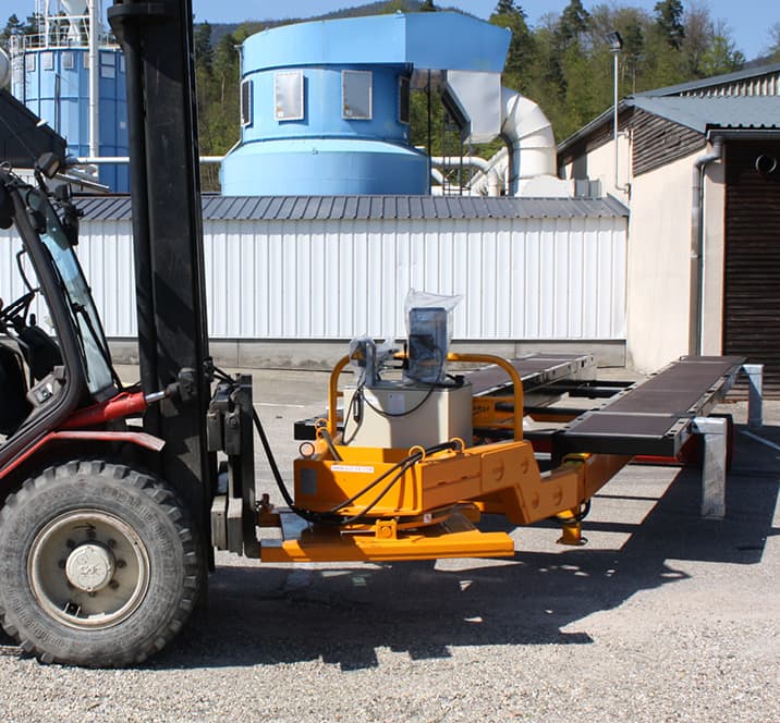 - The internal maneuvering and loading aid with hydraulic lifting system